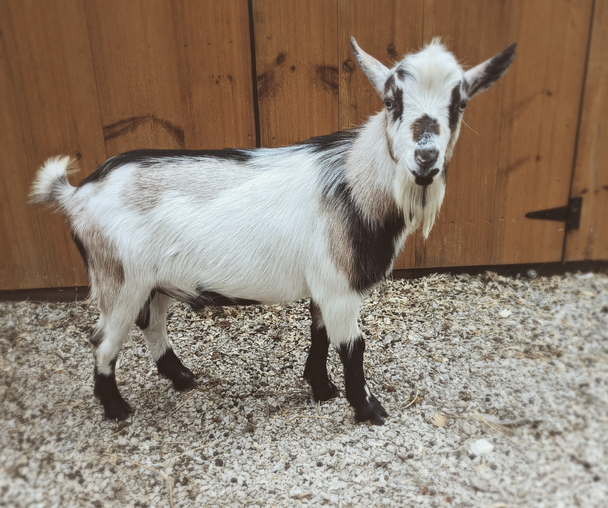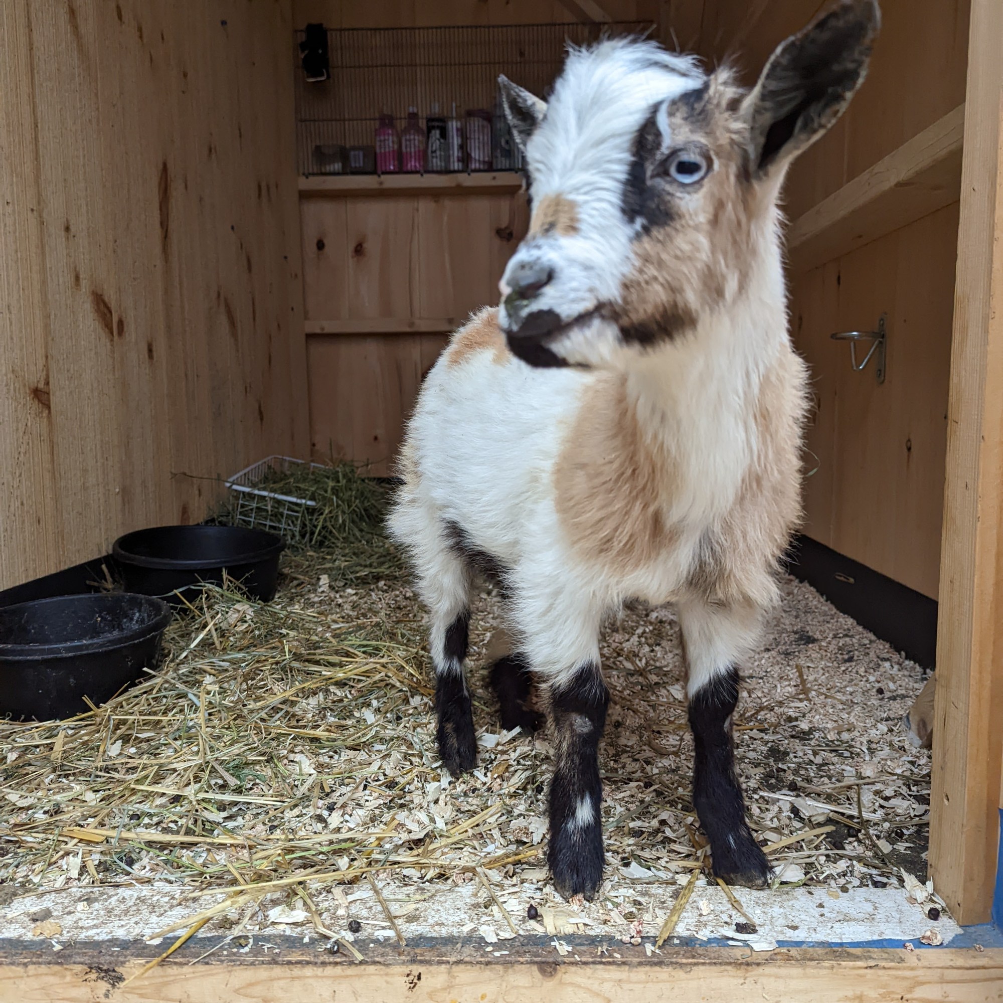 This sweet boy is a little love bug. With his bright blue eyes and darling personality we feel so lucky to have gotten him. He has thrown a lot of gorgeous chamoisee kids this year, the genes are strong with this one!